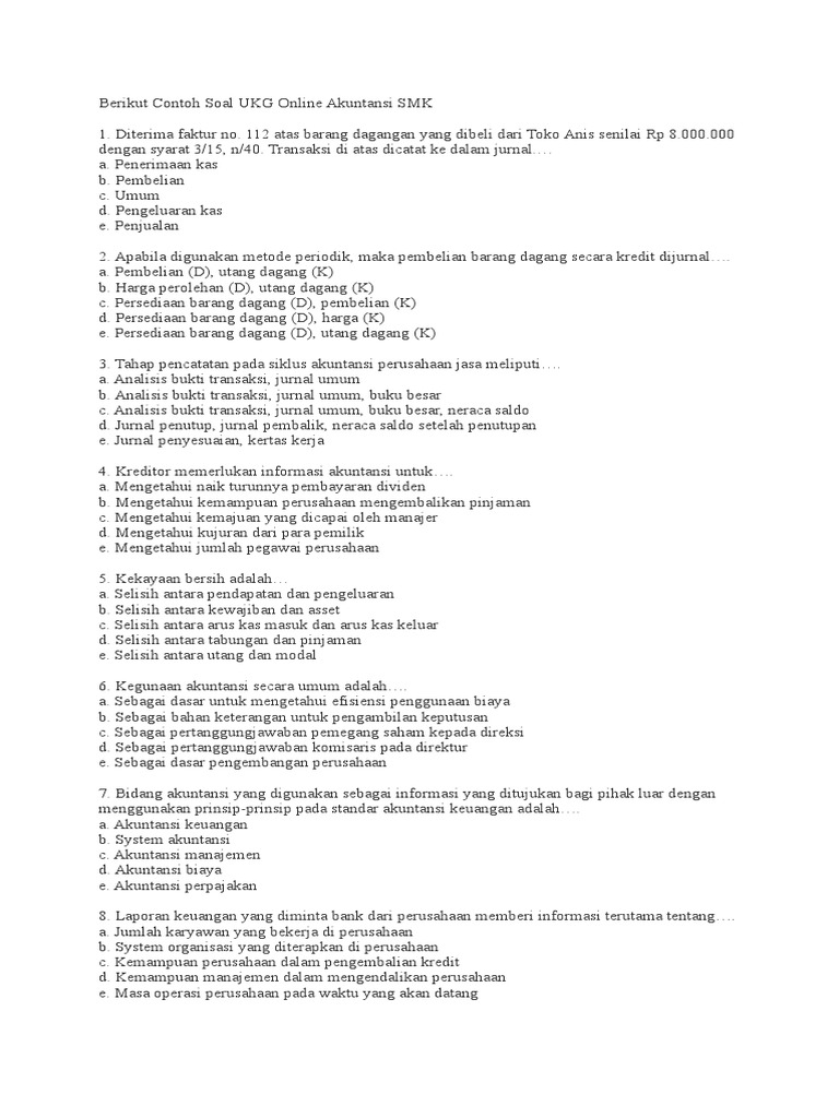 Soal Try Out Akuntansi from image.slidesharecdn.com Soal akuntansi yang membahas tentang bab persamaan dasar akuntansi telah kami bagikan. Pengertian akuntansi adalah suatu proses mencatat, meringkas, mengklasifikasikan, mengolah, menyajikan data fungsi akuntansi selanjutnya adalah untuk mengkomunikasikan hasil dan transaksi yang dicatat ke semua pihak yang tertarik pada bisnis tertentu. Materi sistem akuntansi ini meliputi pengertian, fungsi, contoh soal dan jawaban atas jurnal penjualan (sales journal) jurnal penerimaan kas. Contoh soal persamaan dasar akuntansi dan jawabannya. Akuntansi syariah memiliki peran penting dalam keberlangsungan ilmu akuntansi, terutama di indonesia yang sebagian besar masyarakatnya adalah standar akuntansi keuangan syariah sudah dirancang oleh ikatan akuntan indonesia (iai) dan berdasarkan fatwa majelis ulama indonesia (mui). Berdasarkan wawancara yang sudah dilakukan oleh peneliti kepada karyawan bagian keuangan dan akuntansi universitas negeri yogyakarta terdapat suatu permasalahan. Akuntansi pemerintah daerah series 1 akuntansi pendapatan daerah. Permasalasan ini merupakan penerapan soal operasi hitung dalam kehidupan nyata.